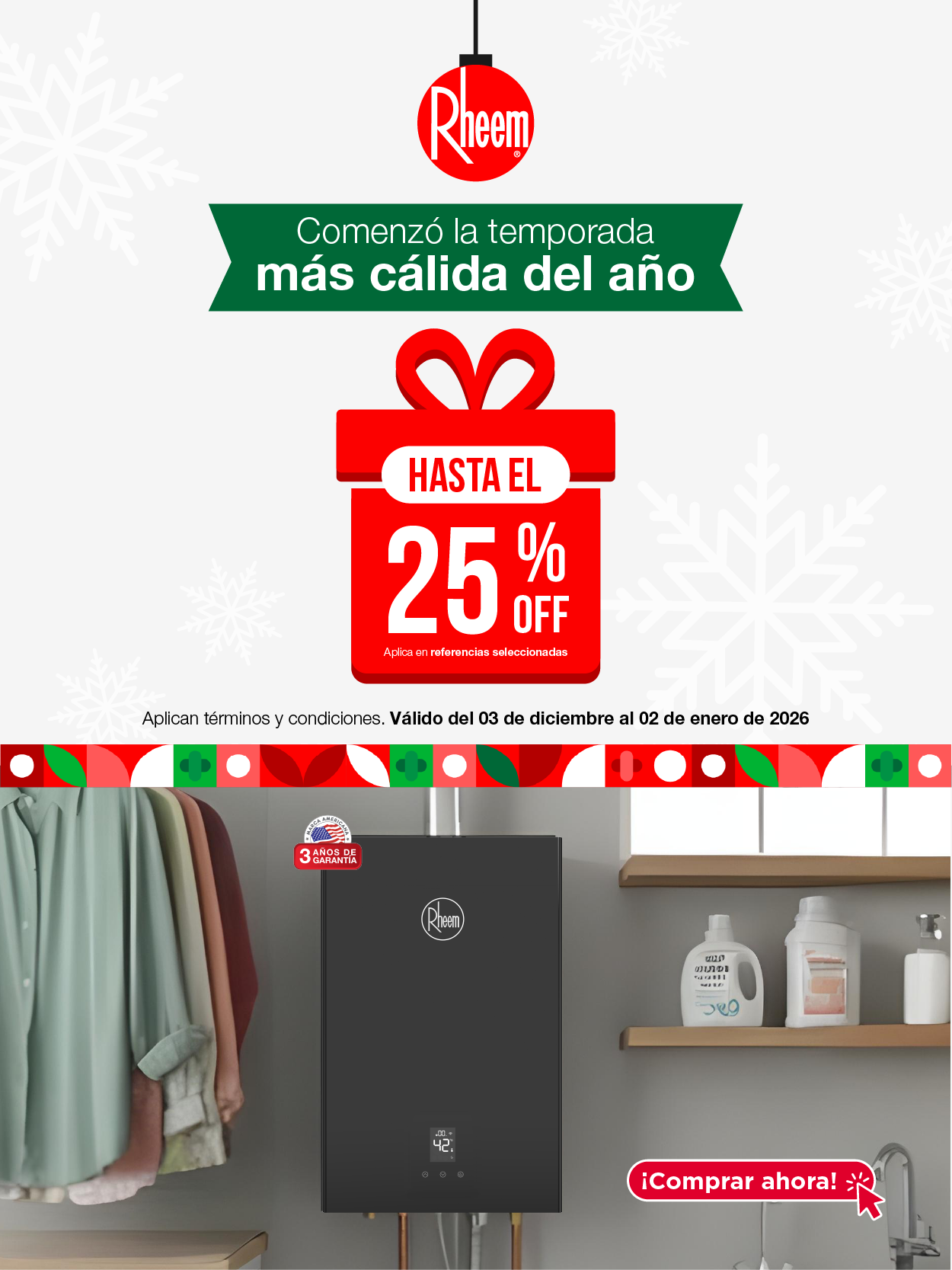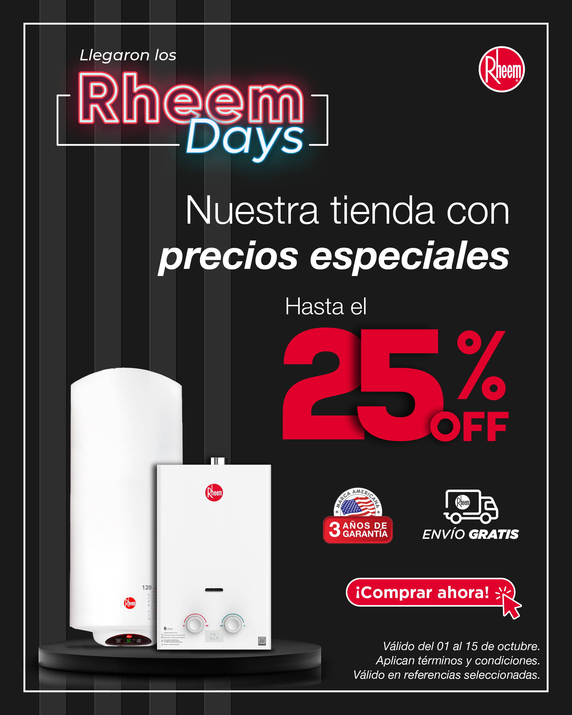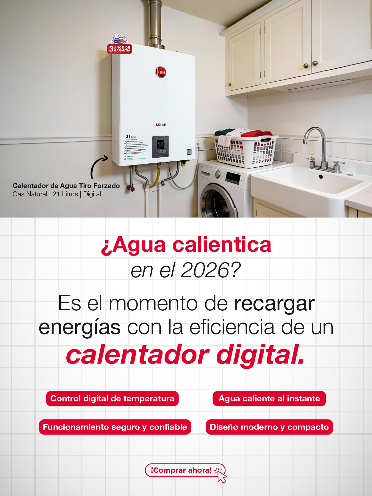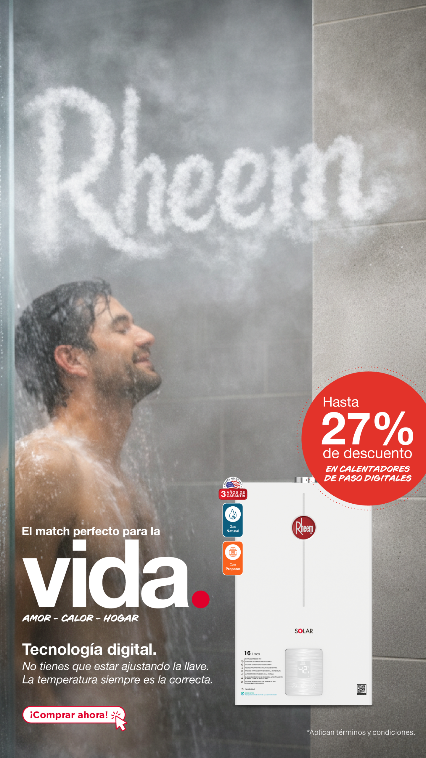 Calentadores de Paso a GasCalentadores de Acumulación Gas o EléctricoCalentadores Rheem eficiencia y confort 3 años de Garantía descuentos calentadores rheemBANNERPRINCIPALCOLECCIONMOBILE750X835BANNERPRINCIPALCOLECCIONMOBILE750X8351 ¿Qué estas buscando? Encuentra el producto ideal para ti Calentador de paso a gas Calentador de paso eléctrico Calentador de Acumulación Líder mundial en fabricación y comercialización de soluciones en agua caliente y climatización